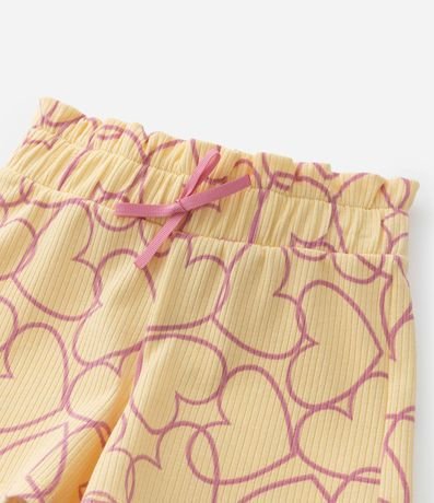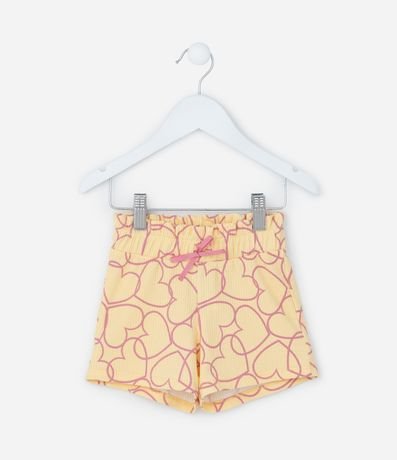 Ref: Shortinho infantil confeccionado em algodão mais sustentável. Possui textura canelada, cós elástico e estampa de corações.