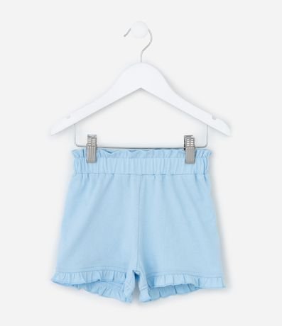 Ref: Short infantil confeccionado em algodão de material e processos mais sustentáveis. Com cós elástico e babadinho na barra.