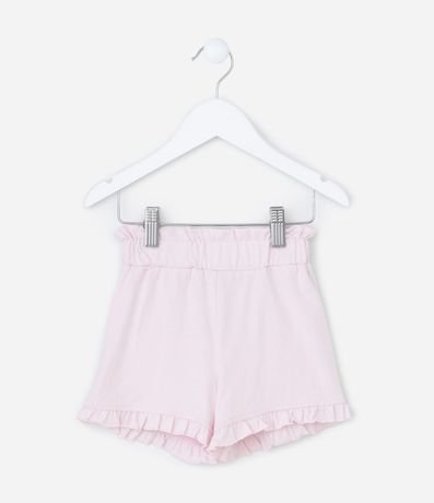 Ref: Short infantil confeccionado em algodão de material e processos mais sustentáveis. Com cós elástico e babadinho na barra.