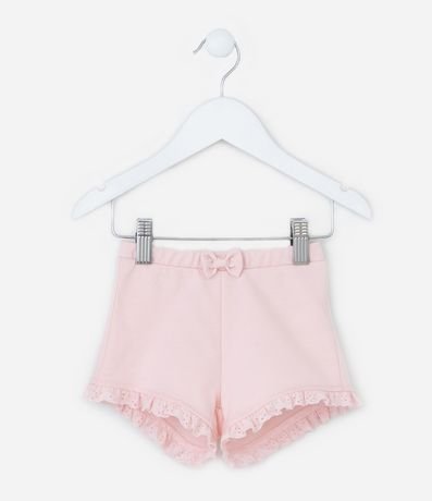 Ref: Short infantil confeccionado em algodão mais sustentável. Possui cós elástico, laço e babadinho na barra.