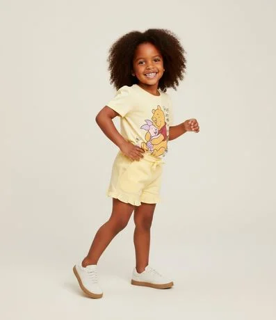 Ref: Short infantil com amarração no cós e bolsinhos. Possui babadinhos na barra.