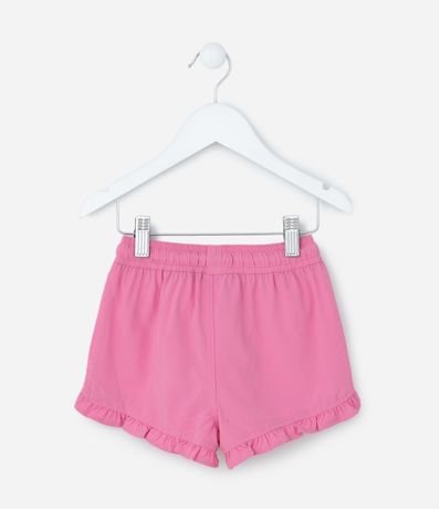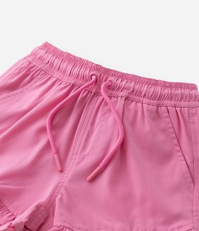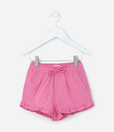 Ref: Short infantil com amarração no cós e bolsinhos. Possui babadinhos na barra.