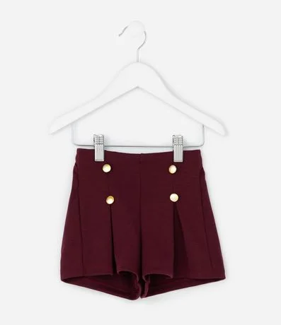 Ref: Short infantil confeccionado em malha encorpada com viscose certificada, garantindo caimento confortável no dia a dia. Possui cós alto estruturado, pregas frontais, botões decorativos aplicados e barra ampla, criando visual moderno para compor combinações casuais.