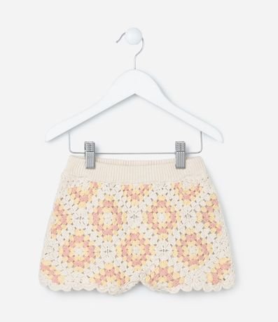 Ref: Short infantil confeccionada em algodão mais sustentável. Possui cós canelado, estampa étnica e textura efeito crochê.