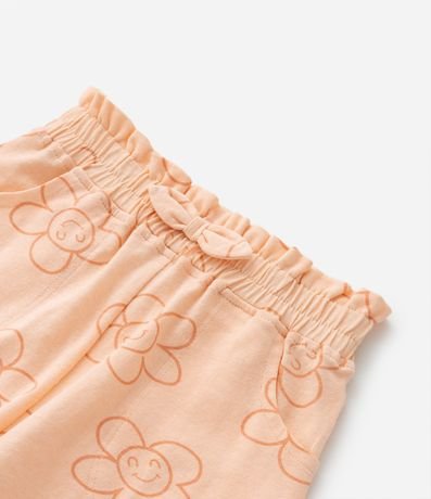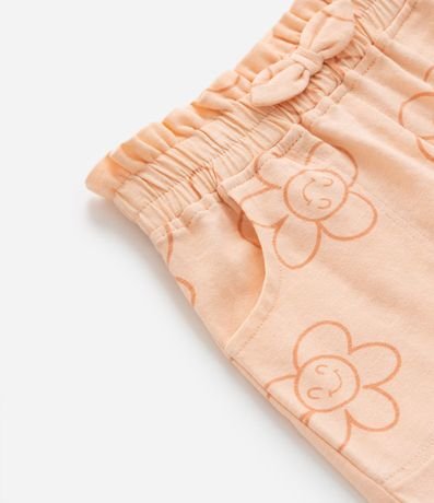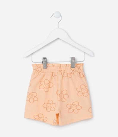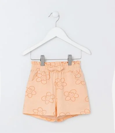Ref: Short infantilcom cós elástico, aplicação de lacinho e estampa de florzinhas.