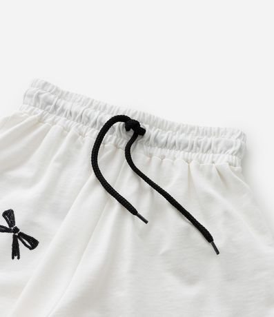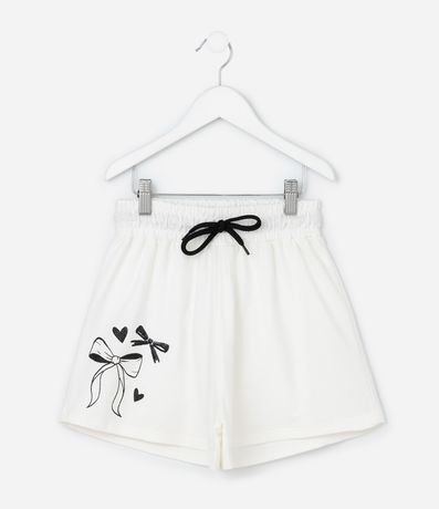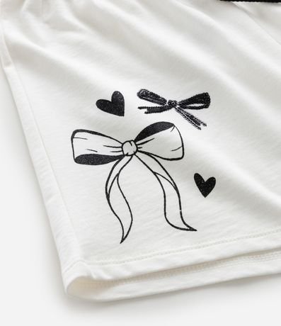 Ref: Short infantil confeccionado em algodão mais sustentável através de boas práticas ambientais. Possui cós elástico, com cordão para ajuste e estampa de laços.