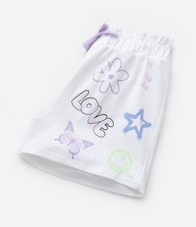 Ref: Short infantil confeccionado em cotton, com cós elástico e lacinho aplicado. Possui estampa de doodles coloridos.