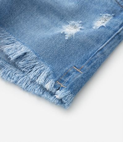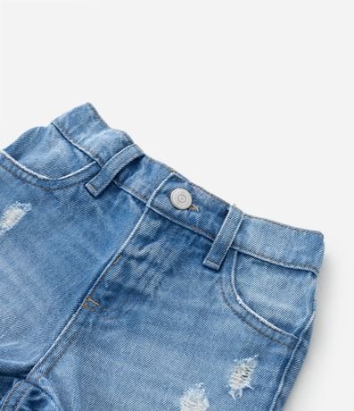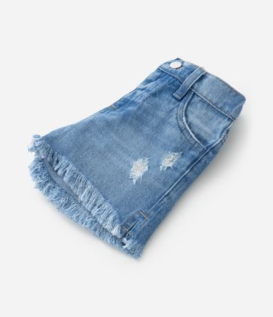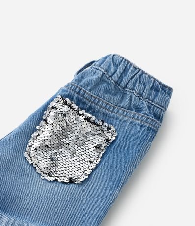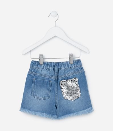 Ref: Short infantil em jeans, com cós elástico, puídos e bolsinho traseiro com aplicação de paetês. Possui barra desfiada.