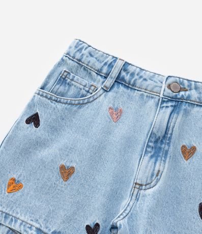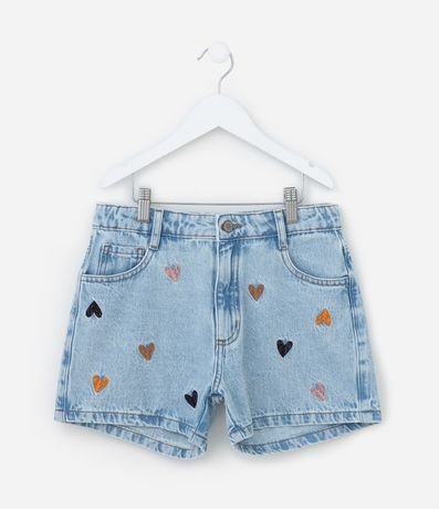 Ref: Short infantil confeccionado em jeans mais sustentável. Possui cós com passantes, bolsos e bordadinho de corações na frontal.