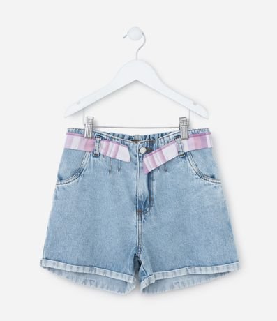 Short Infantil em Jeans com Cinto - Tam 5 a 14 Anos