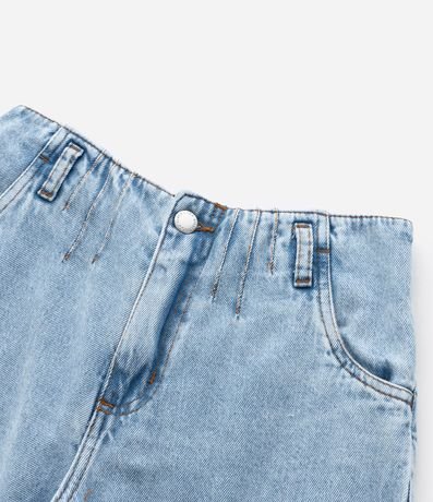 Short infantil confeccionado em jeans mais sustentável, com cinto no cós, bolsos e barra dobradinha.
