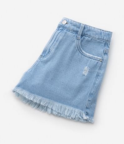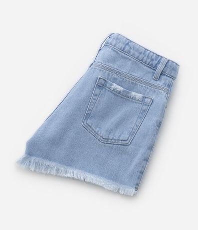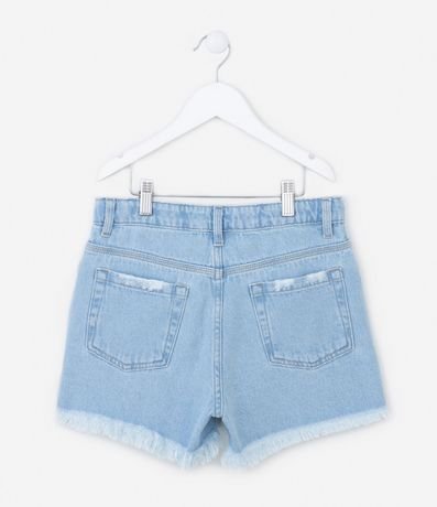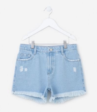 Short Infantil Em Jeans Com Puídos E Barra Desfiada - Tam 5 a 14 Anos