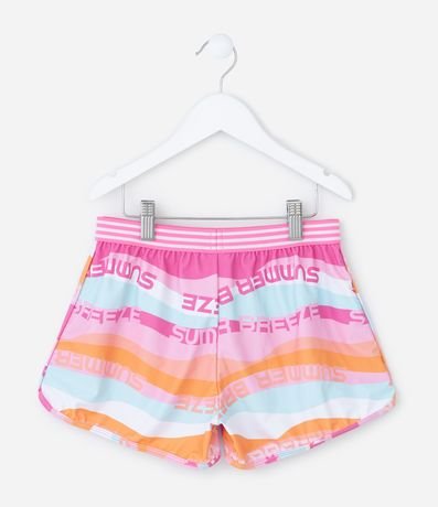 Ref: Short infantil confeccionada em microfibra. Possui cós elástico, estampa de ondas e lettering "Summer breeze".
