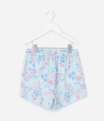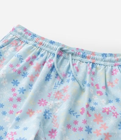 Ref: Short infantil confeccionado em microfibra, com amarração no cós, bolsinhos e estampa floral. Peça feita com material e processo mais sustentável.