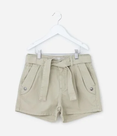 Short Infantil em Sarja com Faixa para Amarração - Tam 7 a 14 Anos