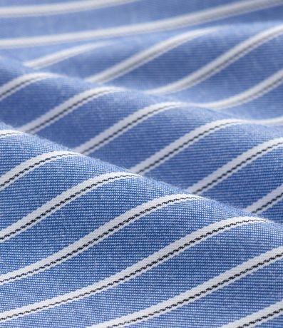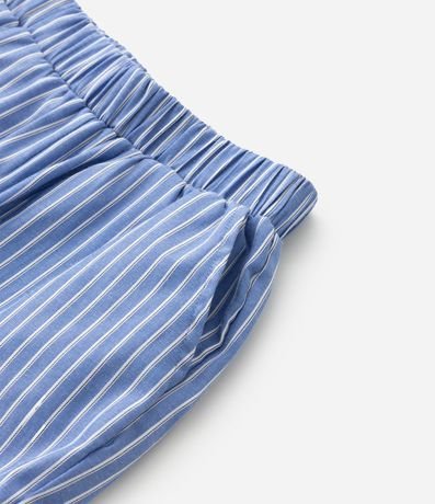 Short infantil confeccionada em tricoline mais sustentável. Possui cós elástico, bolsos, estampa de listras, fio tinto e sianinhas na barra.