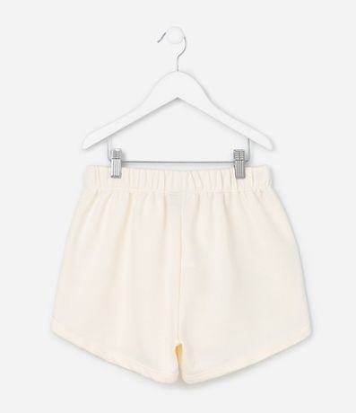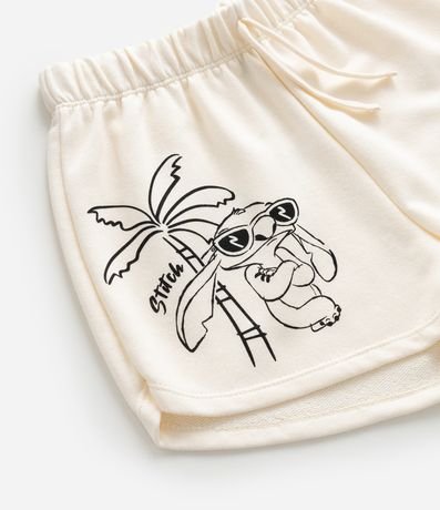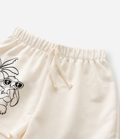 Ref: Short infantil confeccionada em moletom mais sustentável com boas práticas ambientais, no modelo runner. Possui cós com elástico, com cordão e estampa do Stitch na praia.