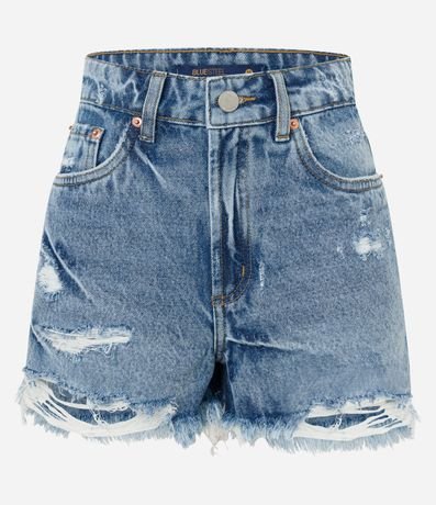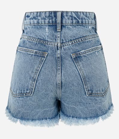Ref: Short curto com cintura alta, estilo destroyed, bolsos frente e costas, com puídos e barra desfiada.