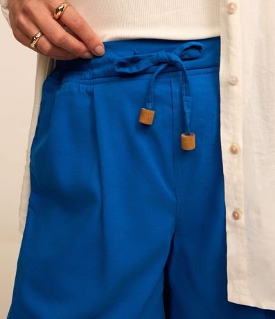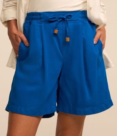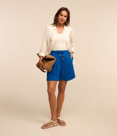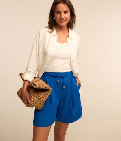 Ref: Short alongado cofeccionado em sarja leve com amarração na cintura e elástico dianteiro no cós. Possui pregas e miçangas nas pontas da amarração.