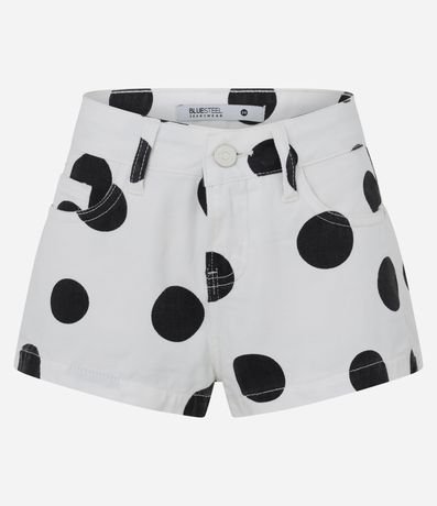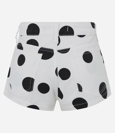 Short micro de cintura baixa, confeccionado em jeans, com passantes no cós, fechamento tradicional, bolsos e estampas de poás - bolinhas. Shortinho bicolor. Este produto possui algodão certificado BCI em sua composição, além de ter sido produzido através de processos mais sustentáveis, sendo ambientalmente mais responsável.