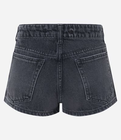 Ref: Short jeans feminino confeccionado em algodão mais sustentável através de boas práticas ambientais. Possui comprimento curto, cintura baixa, barra com acabamento em costura simples, fechamento por botão central e zíper, passadores de cinto em todo o cós, dois bolsos frontais com detalhes de rebites metálicos, pala traseira em formato de v e dois bolsos traseiros.