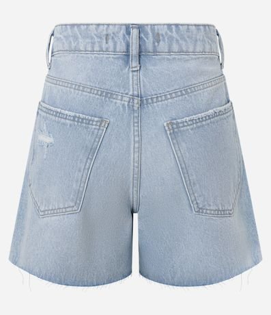 Ref: Short midi confeccionado em jeans com algodão bci mais sustentável, bolsos frente e costas e puídos na barra desfiada.