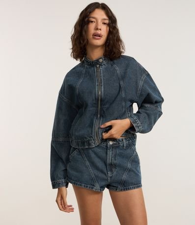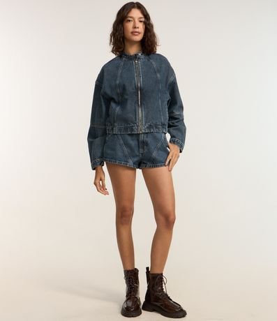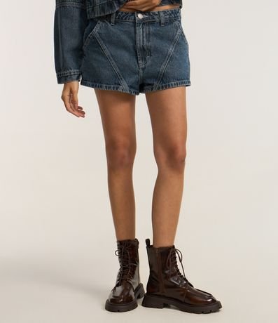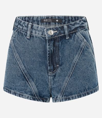 Ref: Short mini confeccionado em jeans com algodão bci mais sustentável, cós com passantes e recortes frontais estilo racing.