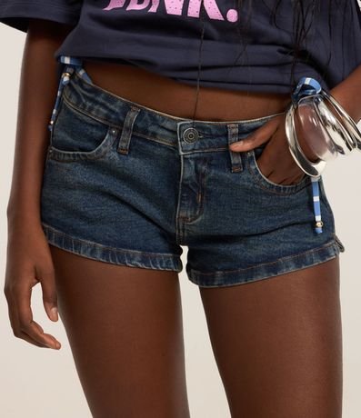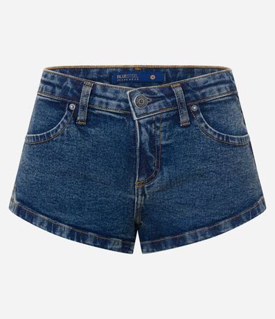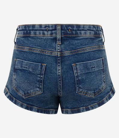 Ref: Short feminino confeccionado em jeans mais sustentável. Peça mini com cintura baixa, cós com passante, fechamento tradicional, bolsos e recorte traseiro.