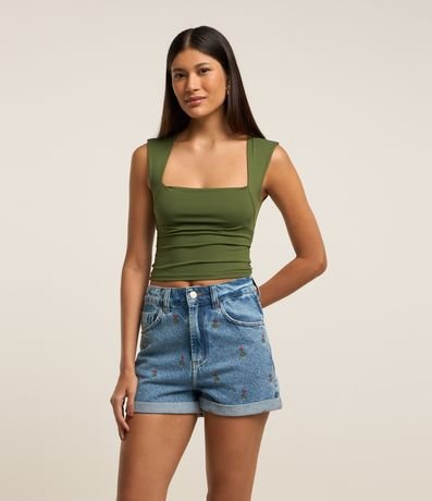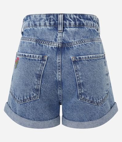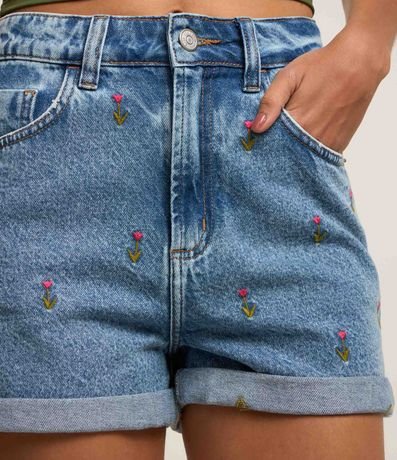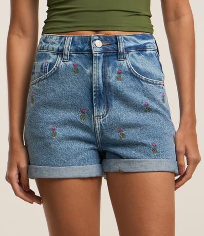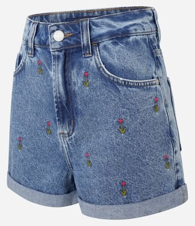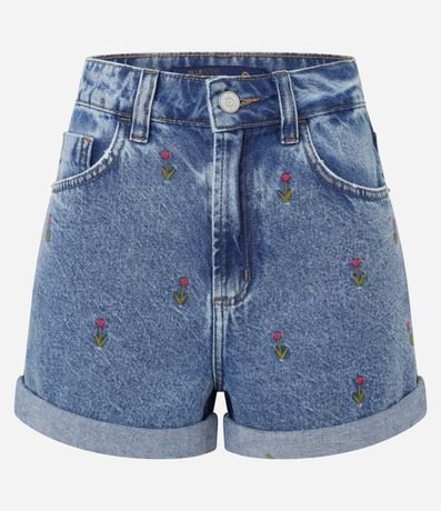 Short Mom em Jeans com Bordadinhos de Tulipas