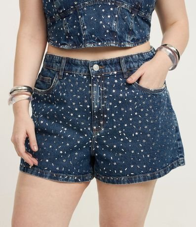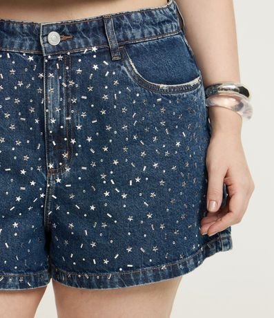 Ref: Short jeans, modelo mom, com passantes na cintura, ajuste elástico no interior do cós e aplicação de estrelinhas na parte frontal. Perfeito para compor aquele look de carnaval!