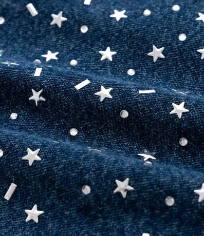 Ref: Short jeans, modelo mom, com passantes na cintura, ajuste elástico no interior do cós e aplicação de estrelinhas na parte frontal. Perfeito para compor aquele look de carnaval!