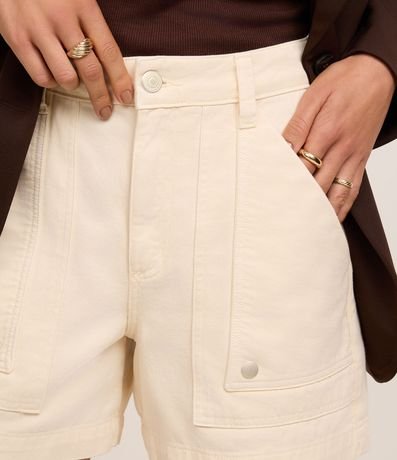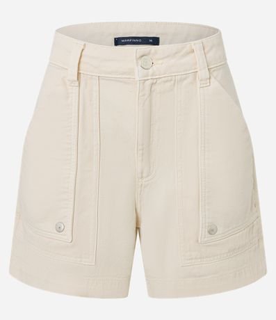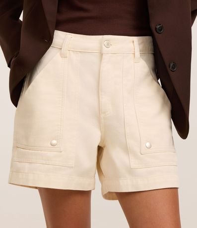 Short Mom em Sarja com Bolso Carpinteiro e Cintura Alta