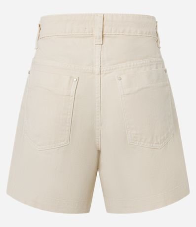 Short mom com cintura alta, confeccionado em jeans com algodão bci e produzido com baixo consumo de água. Possui bolsos frontais, carpinteiro e sem estampa.
