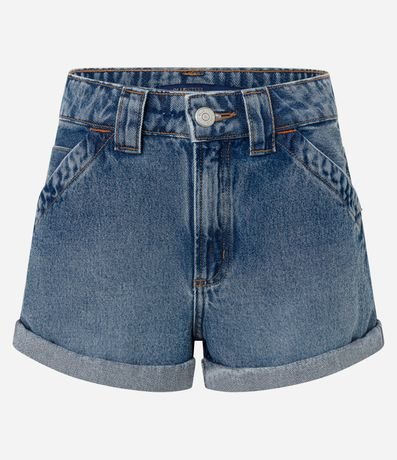 Short mom com passantes no cós, bolso faca, confeccionado em jeans e barra dobradinha.