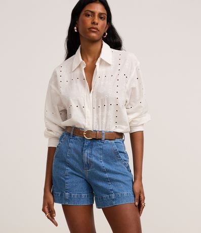 Ref: Short regular, confeccionado em jeans com algodão bci mais sustentável, pesponto contrastante e cintura alta.