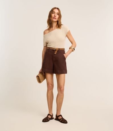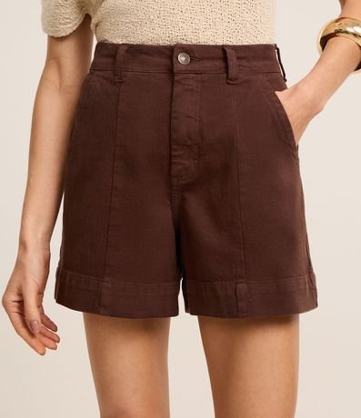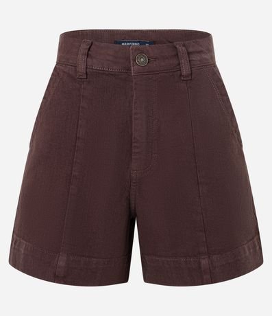 Ref: Short regular, confeccionado em sarja com algodão bci mais sustentável, pesponto contrastante e cintura alta.