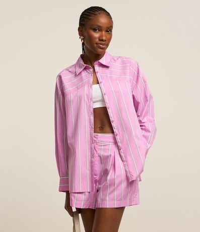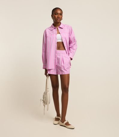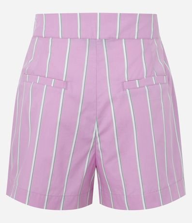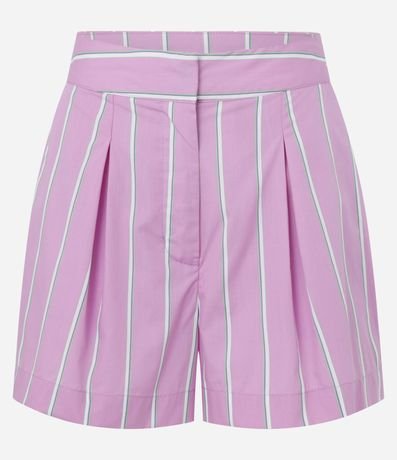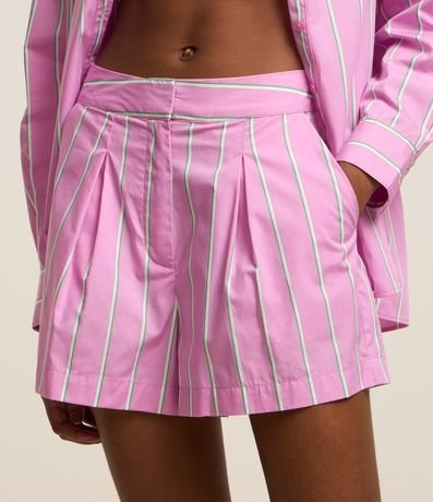 Short regular confeccionada em tricoline, listrado e com pregas frontais.