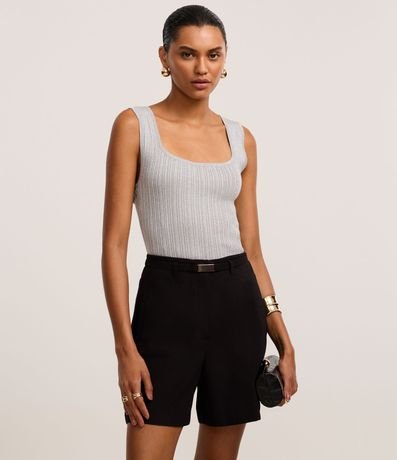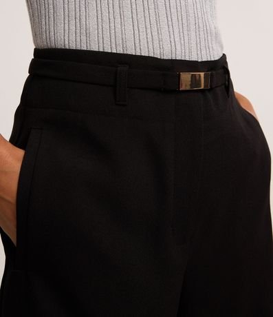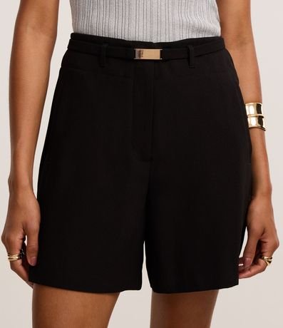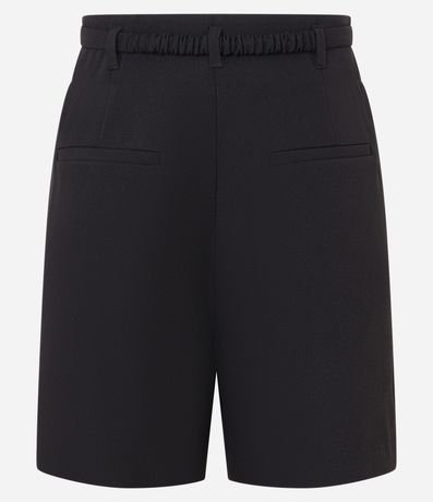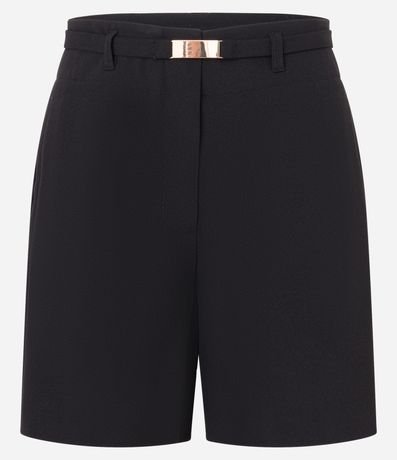 Ref: Short reto alfaiatado, confeccionado em tecido plano, com cintura alta, passantes no cós, cinto elástico com fivela e bolsos falsos atrás.