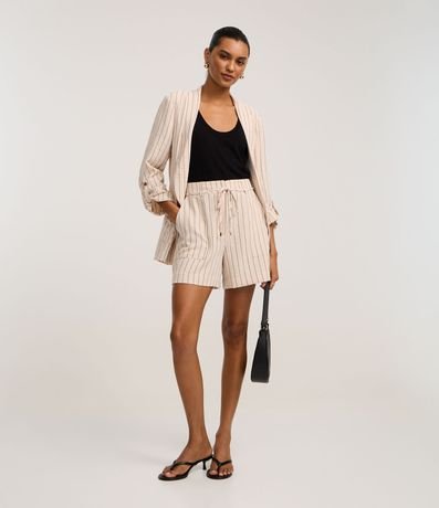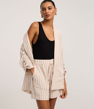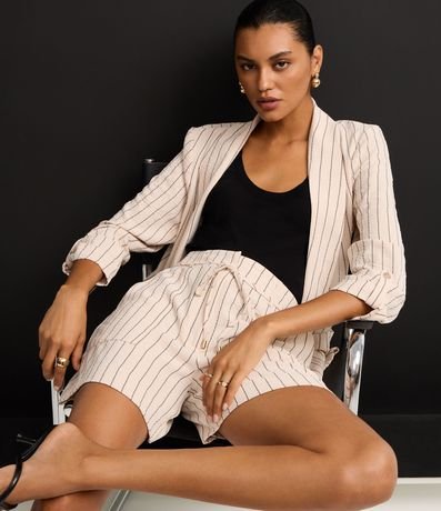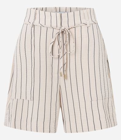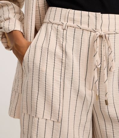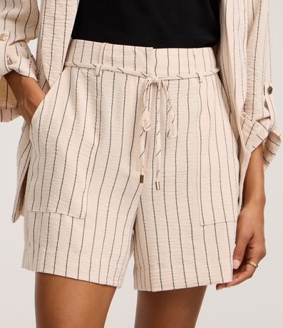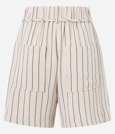 Ref: Short reto de cintura alta, confeccionado em airflow, com passantes e elástico no cós, bolsos carpinteiros e listras verticais de fios tintos. Inclui cinto de amarração na cintura.