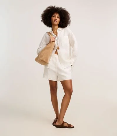 Ref: Short reto de cintura alta, confeccionado em linho, com passantes e elástico no cós, além de pregas. Peça com forro e bolsos.