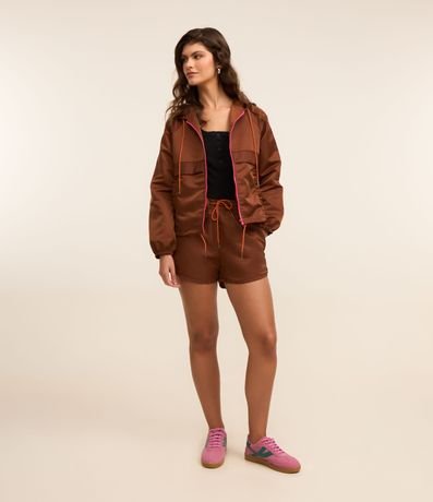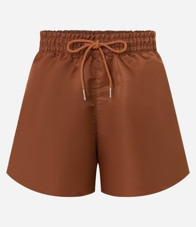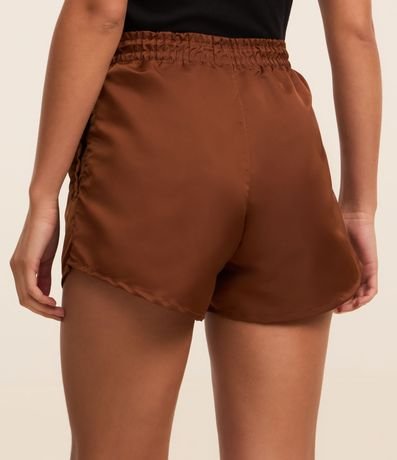 Ref: Short runner com cós elástico e cordão para ajuste, confeccionado em poliamida e sem estampa.