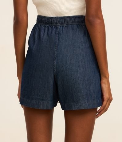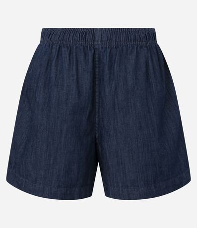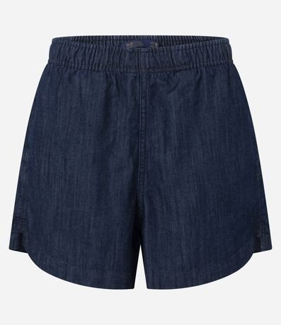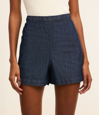 Ref: Short feminino runner confeccionado em jeans de algodão certificado bci com boas práticas ambientais, peça com cós elástico e bolsos.