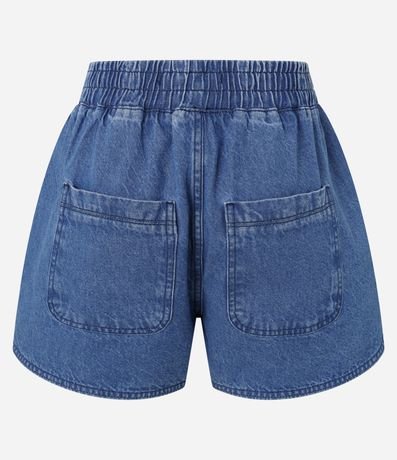 Ref: Short curto, runner, confeccionado em jeans com algodão bci, cós elástico e detalhe em fendinha na lateral da barra.