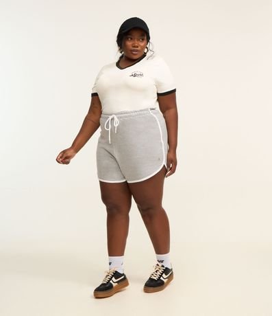 Ref: Short runner confeccionado em moletinho com algodão mais sustentável. A peça tem cintura elástica, lacinho e vieses contrastantes.