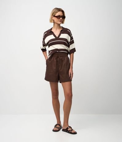 Ref: Short runner de cintura média, em sarja, com elástico e amarração no cós, bolsos carpinteiros. Este produto possui material mais sustentável em sua composição, sendo ambientalmente mais responsável.