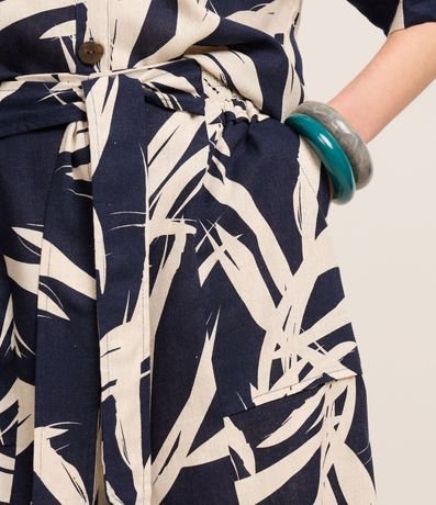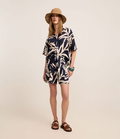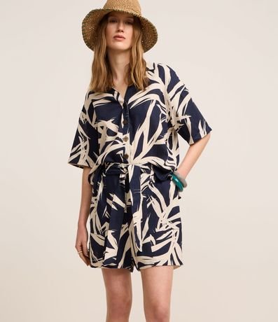 Short Runner em Viscolinho com Amarração e Estampa Folhagem