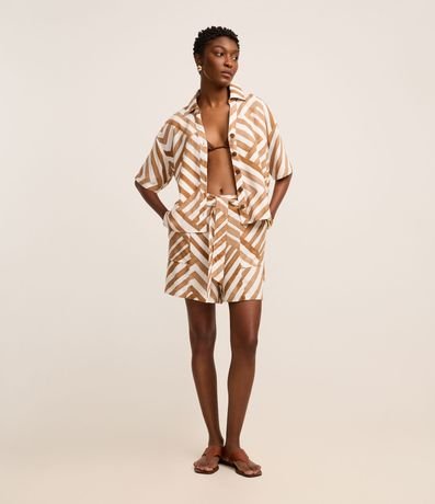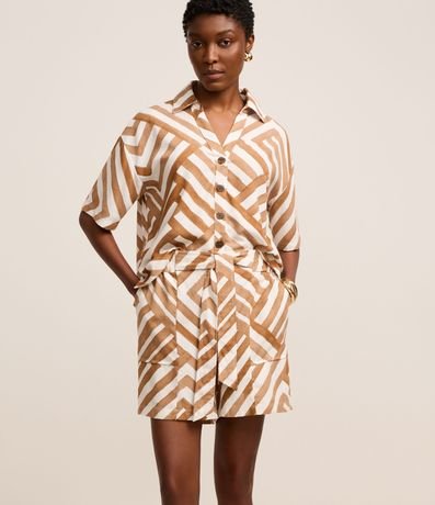 Ref: Short runner, confeccionado em viscolinho com 30% de linho, com passantes no cós, bolsos e estampa geométrica com aspecto de pintura à mão. Inclui cinto de tecido para amarração. Este produto possui viscose certificada em sua composição, sendo ambientalmente mais responsável.