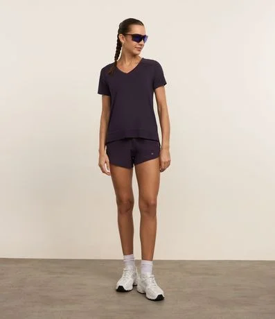 O short runner esportivo tem o gancho mais deslocado, com elástico na cintura e a barra arredondada. Tem a modelagem mais soltinha e é ótimo para praticar exercícios.