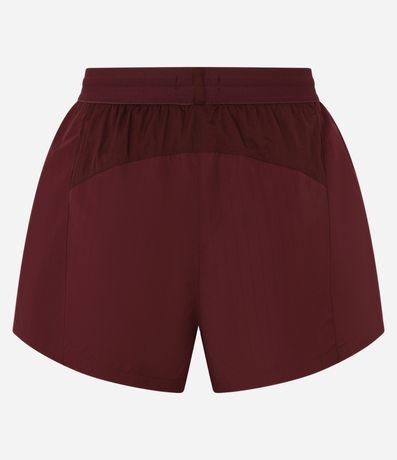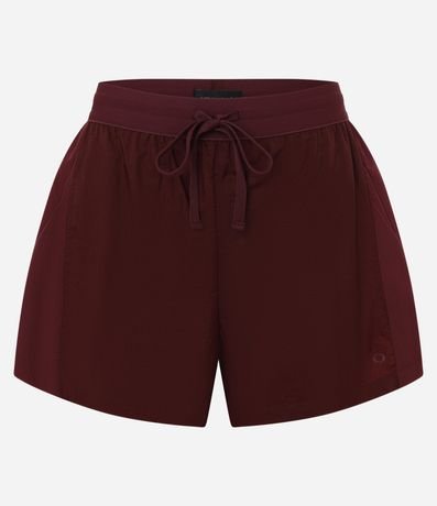 Short esportivo feminino, de modelo runner, confeccionado em poliamida, com cós elástico e amarração na cintura. Sem estampa, possui recortes com fio refletivo.