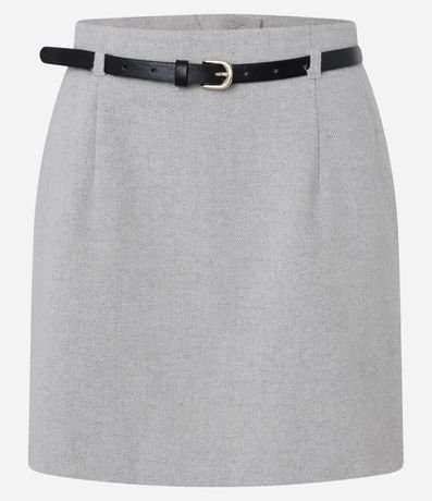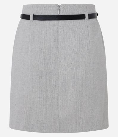 Short Saia Alfaiatada em Polivelour com Cinto Estreito de PU